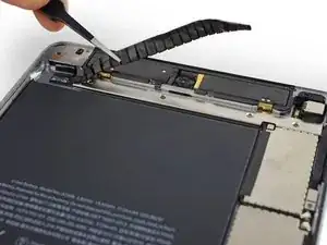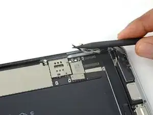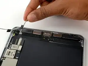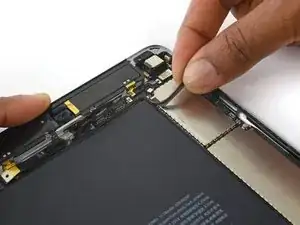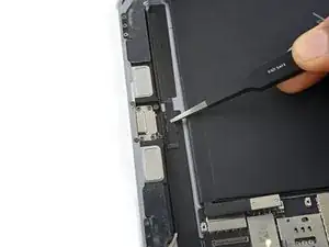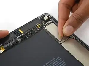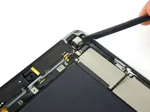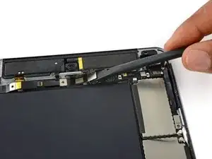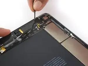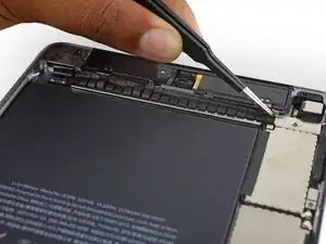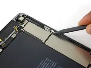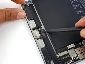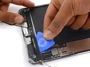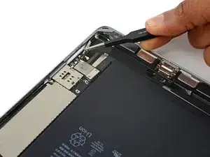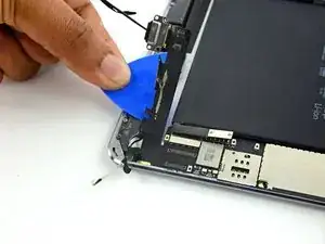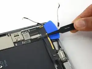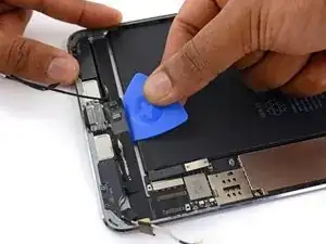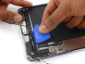 Используйте медиатор для отделения клея, скрепляющего кабель порта Lightning с корпусом iPad.