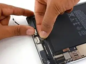 Поднимите левый антенный кабель вверх с кабеля порта Lightning.