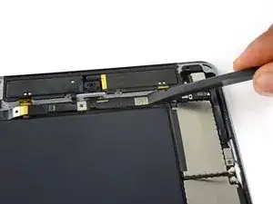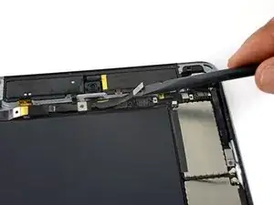 Поверните два медиатора в верхней кромке iPad, чтобы разорвать последние участки клея, удерживающие узел дисплея на месте.