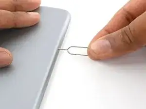 Вставьте скрепку или инструмент для извлечения SIM-карты в отверстие для извлечения SIM-карты.