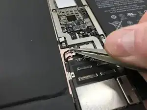 Удалите Phillips-винт длиной 1,9 мм, который фиксирует разъём питания аккумулятора.
