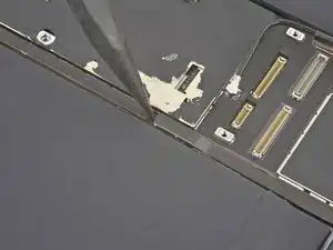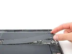 На левом крае iPad расположены несколько шлейфов дисплея. Эти шлейфы чрезвычайно хрупкие и легко повреждаются, если лопатку вставить слишком глубоко или под неправильным углом. Строго следуйте инструкциям, чтобы избежать повреждений.
