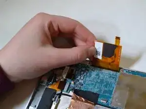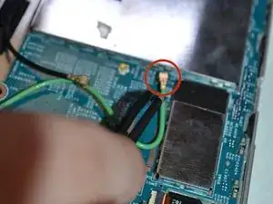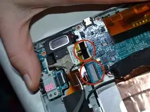 Удалите черную ленту, соединяющую аккумулятор с материнской платой.