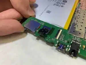 С помощью пинцета аккуратно снимите переднюю камеру с клея на материнской плате.