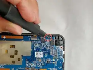 Используйте отвертку Philips #000, чтобы удалить семь винтов Philips длиной 3 мм с материнской платы.