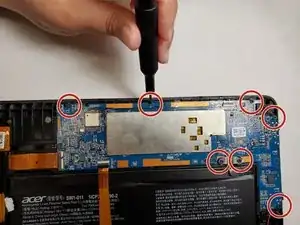 Данное руководство покажет вам, как успешно заменить поврежденную материнскую плату вашего Acer One 10 S1003-19GY. Материнская плата — это печатная плата, которая позволяет всем компонентам вашего компьютера получать питание и взаимодействовать друг с другом. Если она сломается, вы можете заметить странный запах гари, так как материнские платы чувствительны к теплу. Если материнская плата вышла из строя, система не включится. В этом случае вам может потребоваться заменить материнскую плату. Обязательно используйте инструменты, безопасные для ESD, при работе с компонентами, такими как материнская плата, так как они подвержены повреждениям. Убедитесь, что ваш ноутбук полностью выключен и отключен от любых источников внешнего питания перед началом процесса.