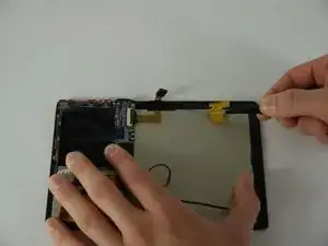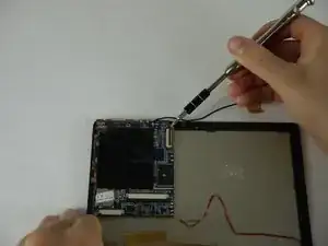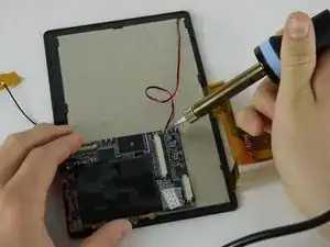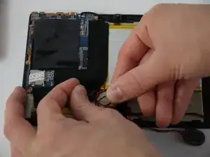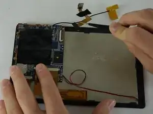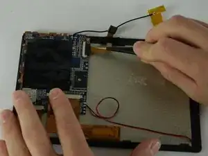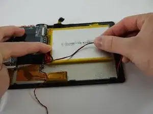 После отделения аккумулятора от панели поместите его лицевой стороной вниз на сам планшет.