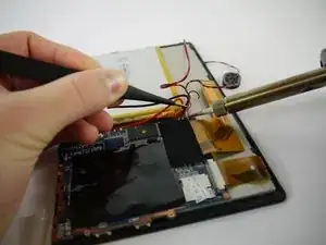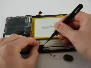 С помощью пинцета снимите ленту, фиксирующую камеры к задней панели.