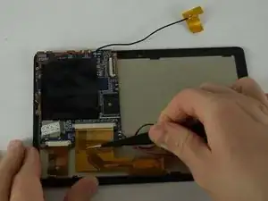 С помощью пинцета извлеките шлейфовый кабель из его разъёма.