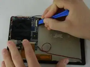 С помощью нейлоновой лопатки аккуратно просуньте её под аккумулятор и отделите аккумулятор от панели под ним.