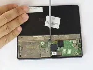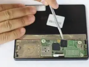 Используйте металлическую лопатку, чтобы выдвинуть материнскую плату из Kindle.