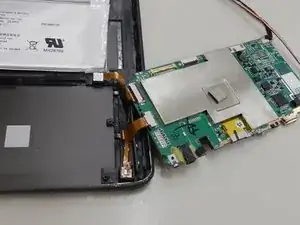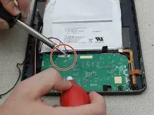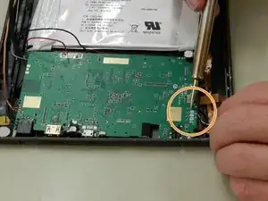Используя отвертку Philips #00, открутите 3 винта, которые соединяют материнскую плату с планшетом.