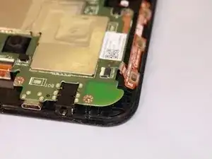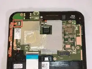 Используйте инструмент для вскрытия iFixit, чтобы аккуратно сдвинуть чёрный разъём шлейфа вперёд до ослабления, при этом не нажимая на сам разъём.