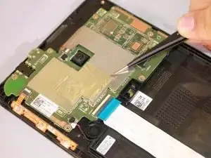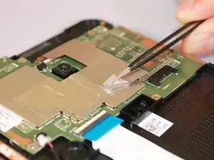 Снимите серебристую ленту в одном из углов с помощью узкогубых пинцетов и удалите ленту с материнской платы.