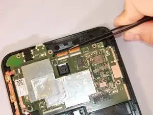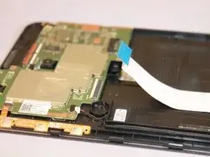 Используйте широкозубые пинцеты, чтобы захватить синюю вкладку, прикреплённую к шлейфу.