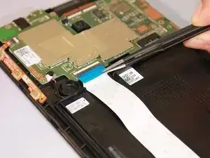Используйте пластиковый инструмент для вскрытия, чтобы поддеть белый разъём кабеля и сдвинуть его из гнезда в боковом направлении.