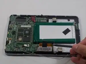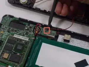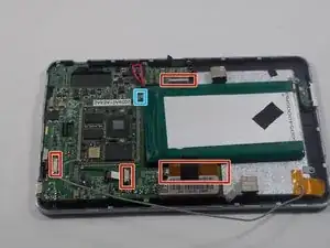 К материнской плате подключены 5 шлейфов. Два из этих кабелей зажаты, а один припаян. Удалите 4 шлейфа, которые можно отсоединить, используя пластиковую лопатку.
