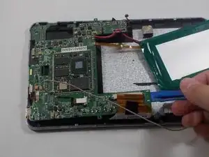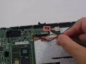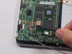 Используйте пластиковую лопатку, чтобы снять материнскую плату, приподняв правую сторону и потянув в сторону.