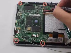 Открутите 4 винта, соединяющих материнскую плату, с помощью отвертки Phillips J0.