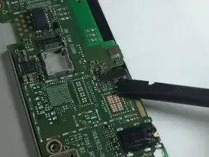 Используйте лопатку, чтобы отсоединить камеру от материнской платы.