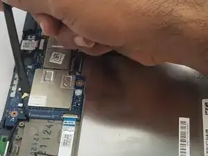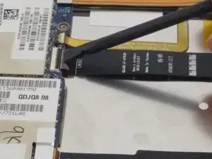 Используйте нейлоновую лопатку, чтобы отключить кабель от материнской платы.