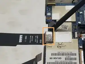 Используйте чёрную лопатку, чтобы отсоединить все ленточные кабели, кроме широкого оранжевого кабеля.