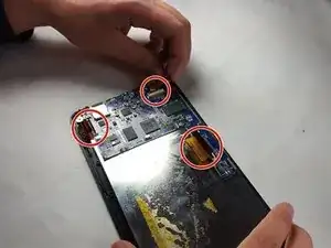 Удалите клей, прикрепляющий материнскую плату к корпусу.