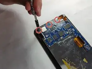 Отверните три винта Phillips #1 длиной 2,5 мм, крепящие материнскую плату к корпусу.