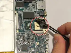 С помощью пинцета отсоедините разъём камеры от камеры.