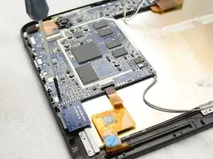 Снимите непроводящую ленту, расположенную на сборке аккумулятора и материнской платы.