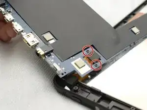 Отверткой ifixit PH00 вывинтите два винта на боковой стороне планшета, удерживающие заднюю крышку.