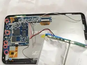 Вывинтите пять винтов, фиксирующих сборку материнской платы, используя отвертку ifixit PH00.