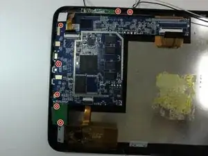 Осторожно поднимите материнскую плату из планшета, убедитесь, что никакие провода не зацеплены и не прикреплены, пока вы поднимаете материнскую плату.