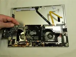 Снимите десять винтов, удерживающих материнскую плату, с помощью крестовой отвертки Phillips #0.