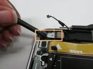 Снимите ленточный разъём, который подключается к модулю WLAN.