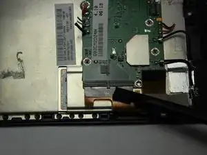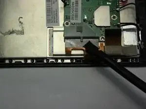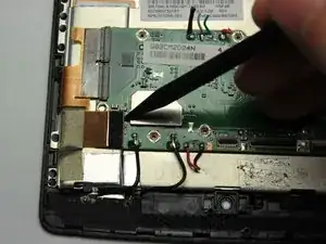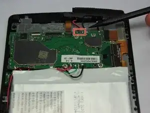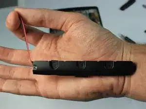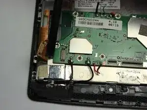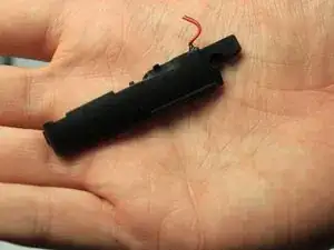 Найдите провода, соединяющие нижний динамик с материнской платой. Провода проходят вдоль аккумулятора.