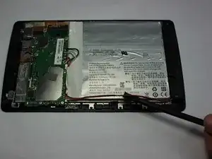Используйте пластиковую открывалку, чтобы отделить заднюю крышку от планшета. Аккуратно подденьте ею края, обходя весь периметр устройства, чтобы открыть все стороны.