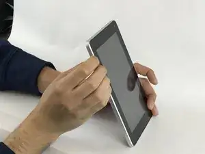 Другой рукой аккуратно нажмите на центральную часть задней панели планшета, пока передний экран не отделится от серебристой задней крышки.