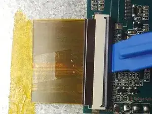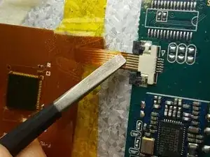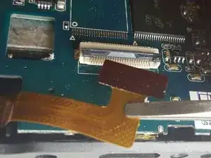 Поднимите защёлку с нулевым усилием вставки пинцетом и извлеките ленточный кабель.