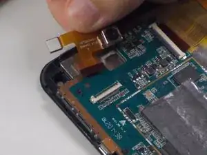 Извлеките камеру, поддев чёрный разъём, удерживающий ленточный кабель, большим пальцем или инструментом для вскрытия.