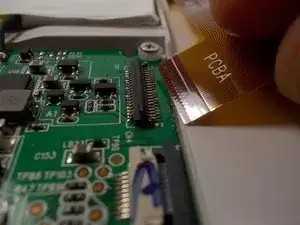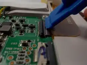 Снимите плоский шлейф, приподняв разъём пластиковым инструментом и вытащив шлейф.