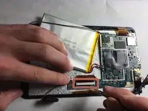 На данном этапе не пытайтесь полностью снять аккумулятор, так как он всё ещё подключён к материнской плате.