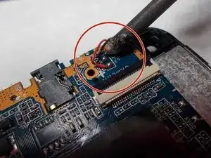 Теперь необходимо расплавить паяные соединения, чтобы отсоединить провода, фиксирующие материнскую плату.
