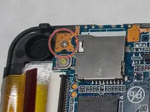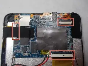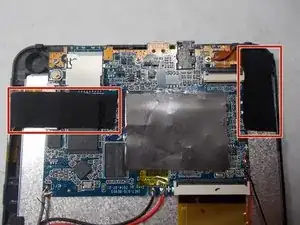 После снятия задней крышки вы увидите материнскую плату в верхней части задней панели планшета.