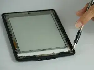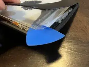Осторожно подденьте рамку (безель) экрана пластиковым инструментом для вскрытия. Начните с углов и проводите инструментом по краям, пока не вернётесь в исходную точку.