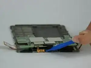 Используйте пластиковый инструмент для вскрытия, чтобы приподнять материнскую плату вверх из рамки.