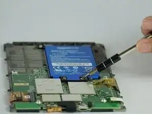 Открутите три винта Phillips #000 длиной 3.0 мм, фиксирующие аккумулятор.