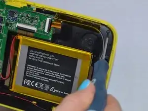 Аккумулятор приклеен к черному пластику. Используйте пластиковый инструмент для открытия, чтобы поддеть аккумулятор от черного пластика.