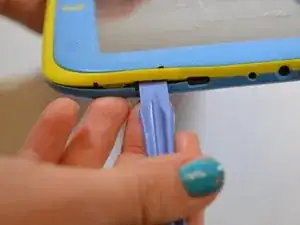 Используйте пластиковый инструмент для открытия, чтобы отсоединить переднюю часть от задней. Начните отсоединение с слота MicroSD.