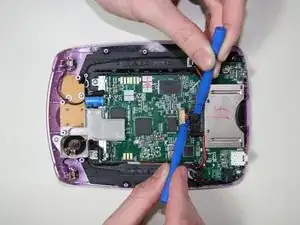 Используйте небольшой пластиковый инструмент для открывания, чтобы начать разделение цветной передней панели и белой задней панели устройства.